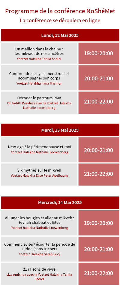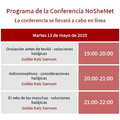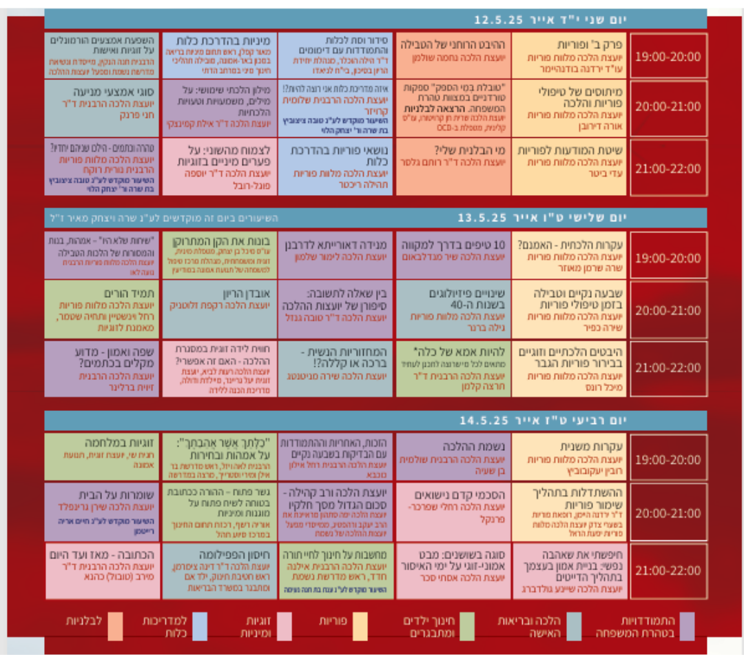 The conference will include a variety of shiurim and lectures on Taharat HaMishpacha, relationships, fertility, sexuality, parenting and more, all given by expert Yoatzot Halacha and top notch professionals.